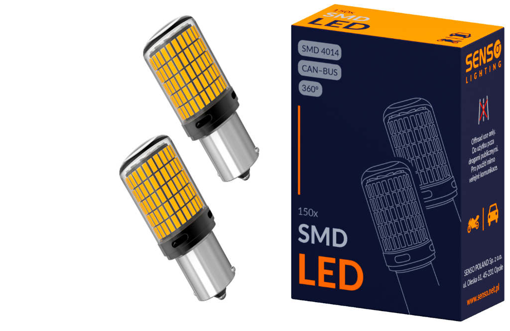 ŻARÓWKA SENSO LED PY21W 150xSMD 4014 CANBUS POMARAŃCZOWA
